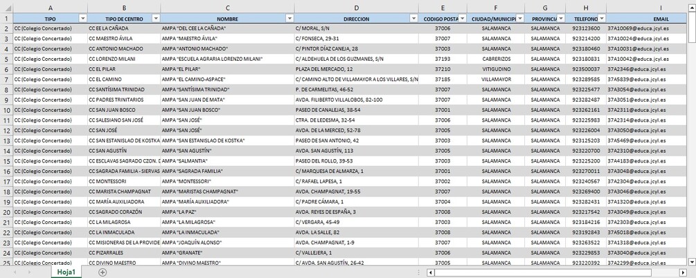 Completa Base de datos de 48 Ampas de Soria, España en formato excel, organizada con todos los datos de contacto (incluyendo nombre, dirección, localidad, teléfono, emails, sitio web, etc).
