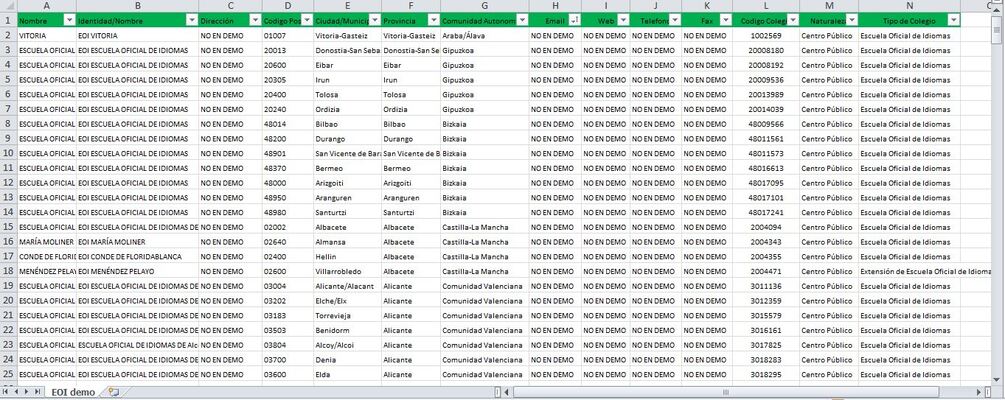 Completa Base de datos de 310 Escuelas Oficiales de Idiomas EOI (España) en formato excel, organizada con todos los datos de contacto.
